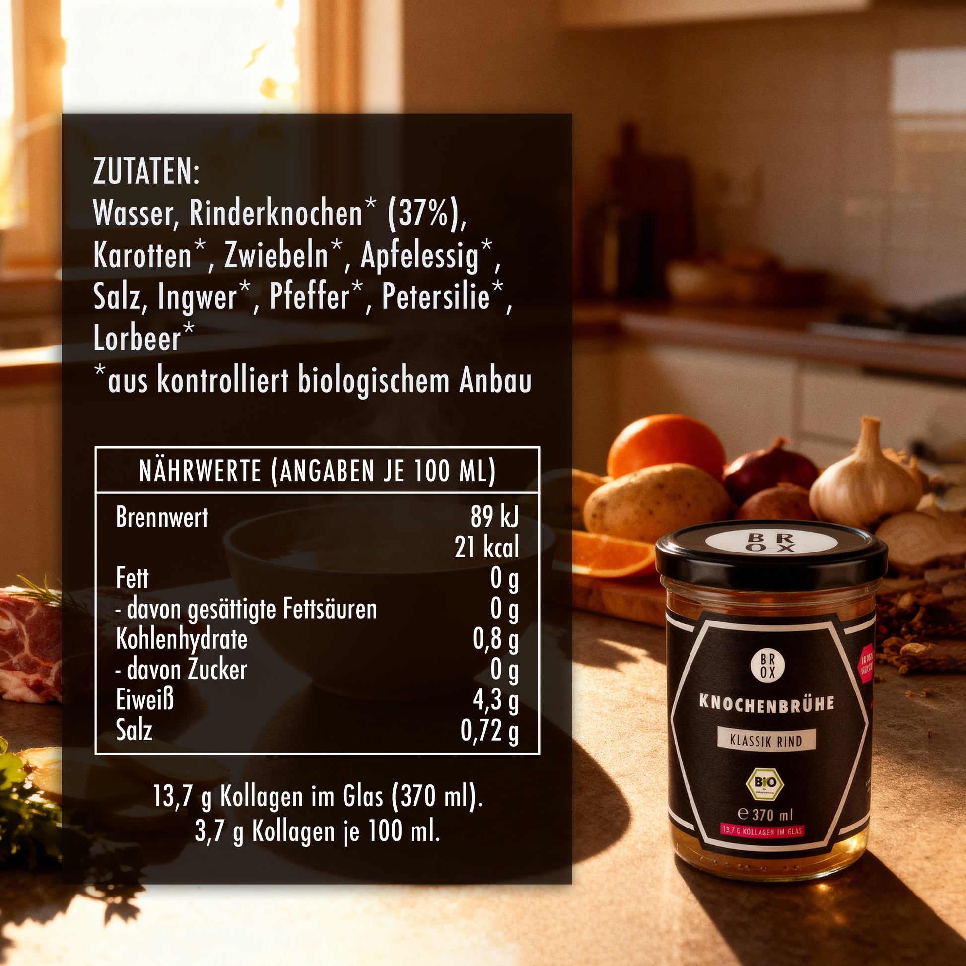 Für uns ist Brox die Basis einer jeden Speise, so erhalten wir unsere tägliche Portion Leben in Form einer goldenen wärmenden Brühe.